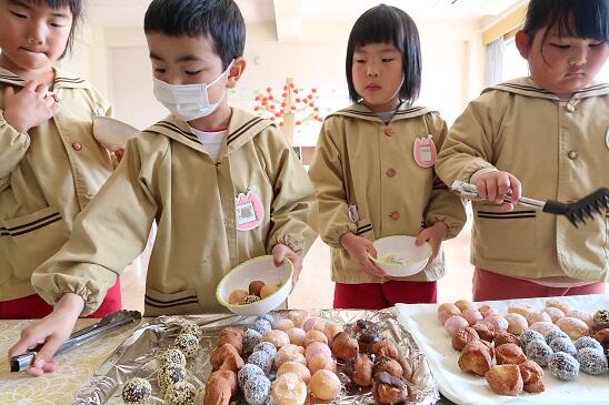 3月3日のひな祭りに向けて行いました。年長児は説明書を見ながら試行錯誤を繰り返して飾り付けをしました。