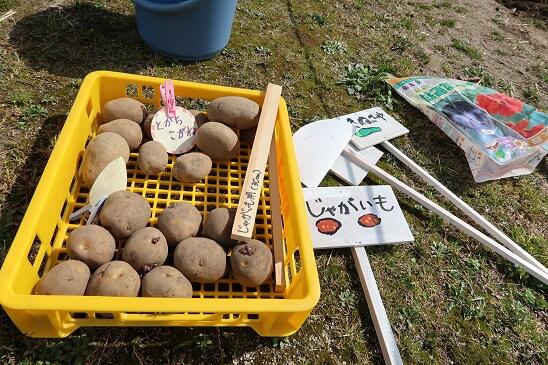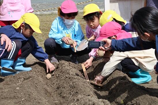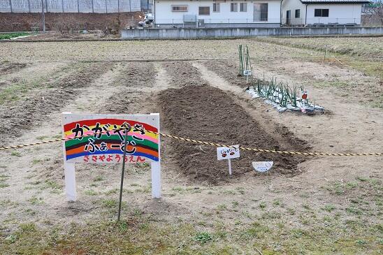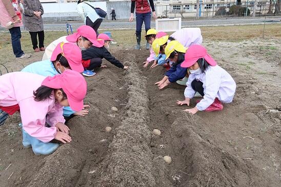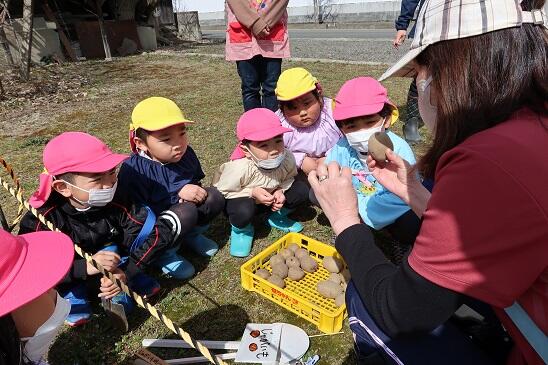 3月14日(火)かがやきファーム(園畑)に、みんなでジャガイモの種芋を植えました。