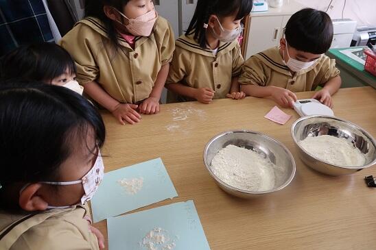 今回は、餃子の皮づくりからの挑戦です。粉の重さを量っています。