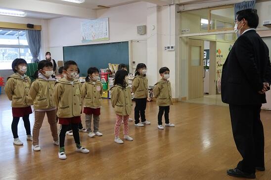 1月10日(火)第3学期の始業式を行いました。雪が吹雪く寒い日でしたが、みんな元気に登園しました。