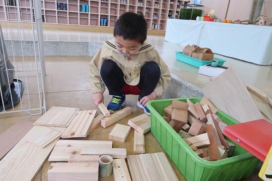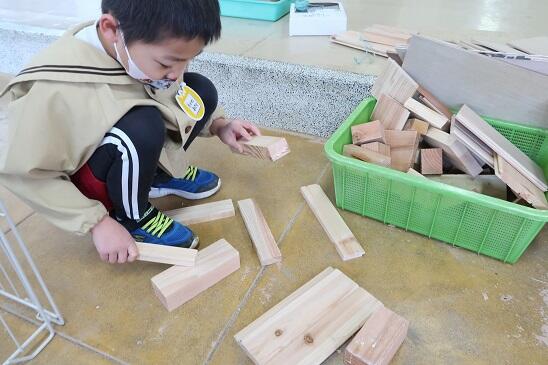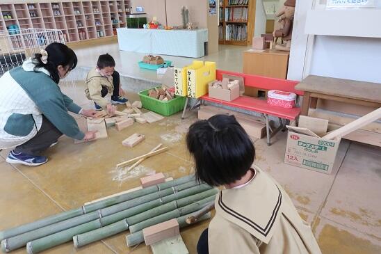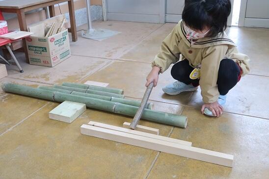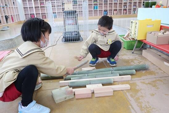 1月23日(月)保護者の方からいただいた木切れや竹を叩いてみたらいい音がしたので楽器にしてみました。