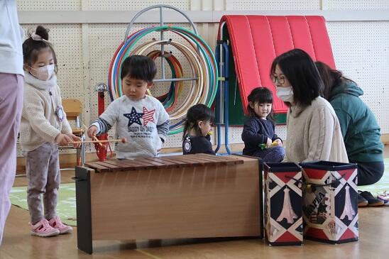 オルフの木琴で、仲良く楽しそうに音遊びをしています。