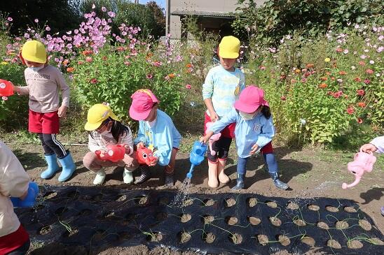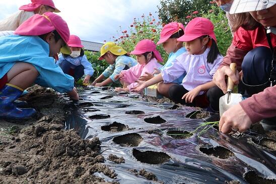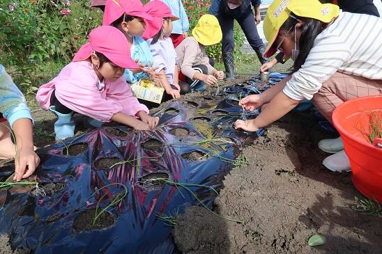 10月11日(火)かがやきファーム(園畑)でタマネギの苗を植えました。