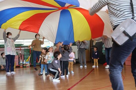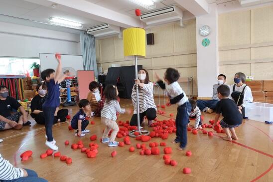 楽しく好きな遊びをしたあと、運動会で使ったバールーン、親子で楽しみました。