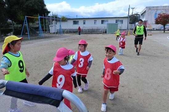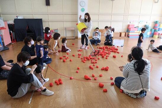 いつもの好きな遊びの後、運動会種目の玉入れを行いました。