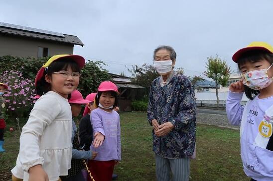 10月14日(金)、かがやきファーム(園畑)に、水あげに行くと、畑を貸していただいている齋藤さんに会いました。