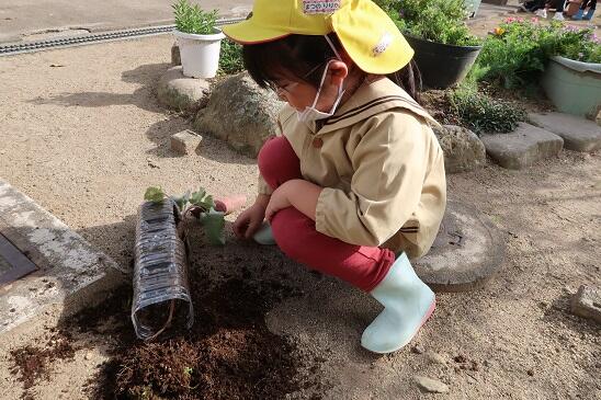 収穫は、来年の5・6月頃でしょうか。年長さんは小学校だけれど収穫に来てね。
