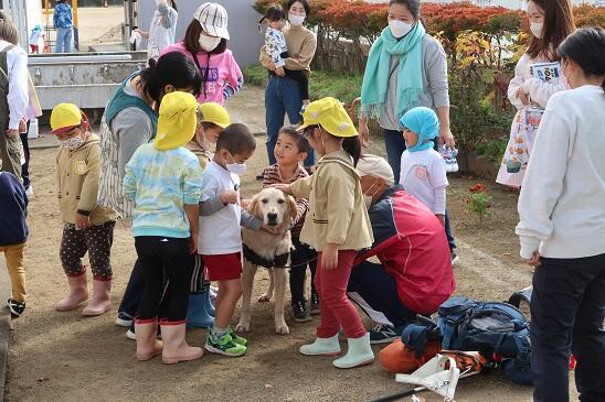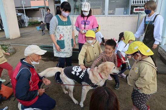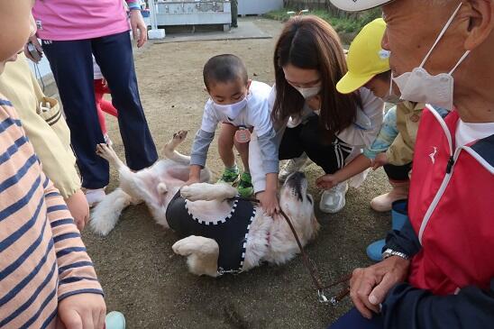 園児たちは、盲導犬のヴィフと楽しい癒やしの時を過ごしました。