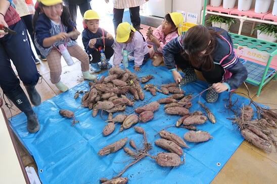 掘ったさつまいもは、園での焼き芋などの調理用にしたり、各園児の家庭に持って行ってもらったします。