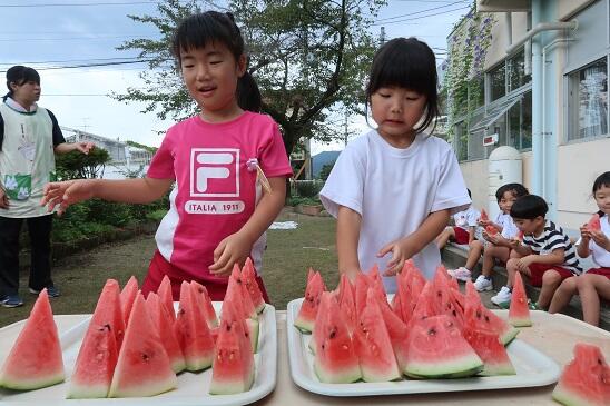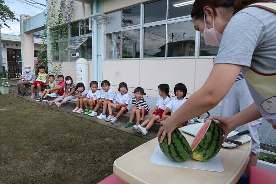 9月1日(木)、畑作りでお世話になっている近所の森谷さんから、スイカをいただきました。