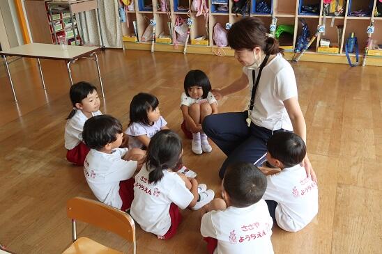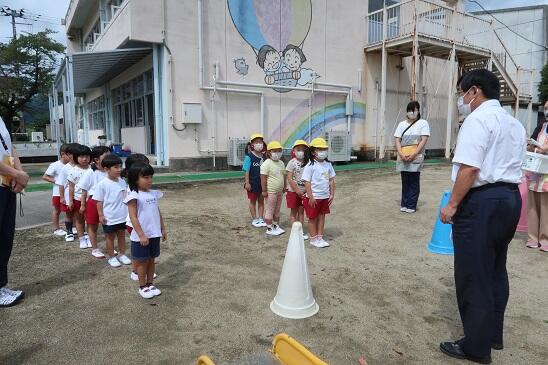 園児全員の安全を確認して、園長先生から「安全な避難と命を守ること」にこれからも気をつけて生活しましょうと話がありました。