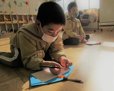 年少組、年長組で、今年お世話になった地域の方々に年賀状を書きました。