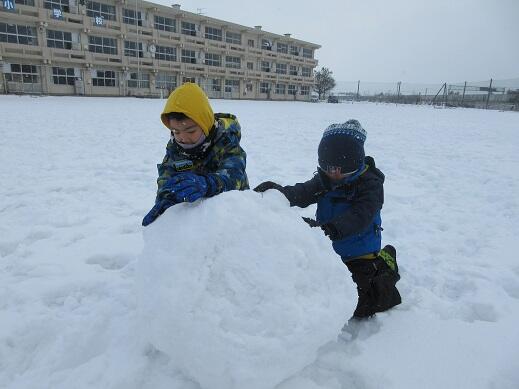 大きな雪玉を作るお友達もいました。大きな雪だるま、できるかな?