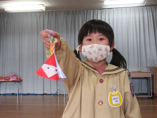 発表が終わった後は、みんなで椅子取りゲームをしました。チャンピオンには、年少組のみんなが作ってくれたプレゼントが♪