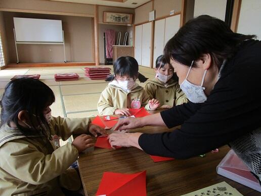 年長たけのこ組で、折り紙でポインセチアを作ってみました。