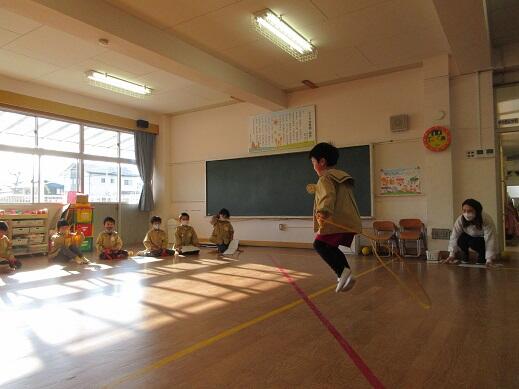 最初はなかなか跳べないけれど、コツをつかむまで何回も繰り返して頑張っているところです。