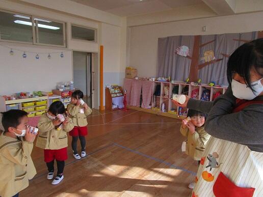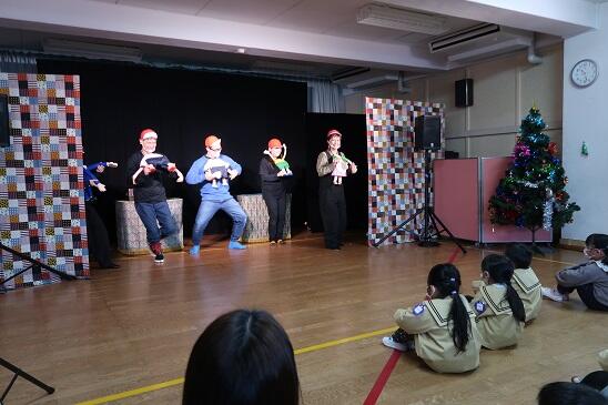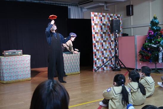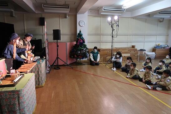 12月7日(火)本園遊戯室で、札幌を本拠地に公演活動を行っている人形劇団野良犬plus+の人形劇公演を行いました。