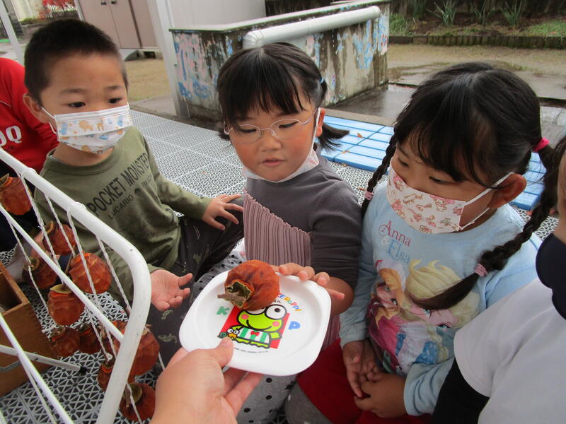 12月6日(月) 年少さんで作っていた干し柿、そのまま食べても美味しいのですが、