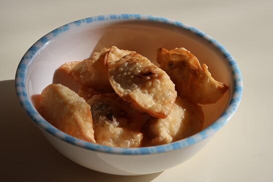 そこで、餃子の皮に干し柿とチーズを巻いて、油で揚げてみました。