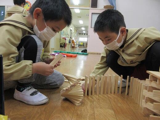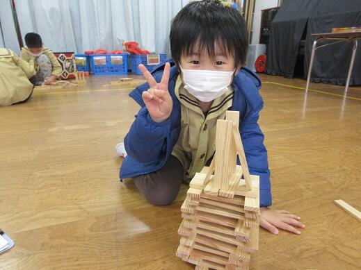 ”カプラ”という細い積み木でいろんな積み方を考えました。