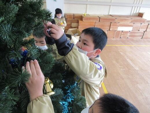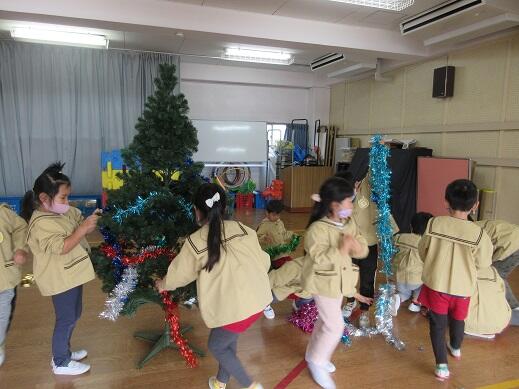 年長組では、クリスマスを楽しみにしながら、ツリーを組み立てて飾りつけをしました。