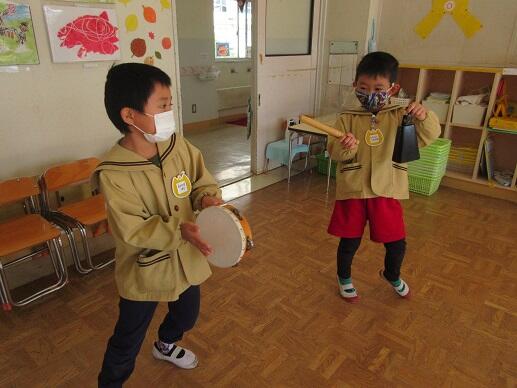 『七五三サンバ』に合わせて、リズミカルに演奏しました。
