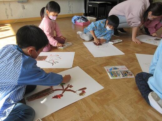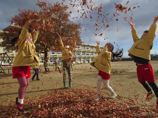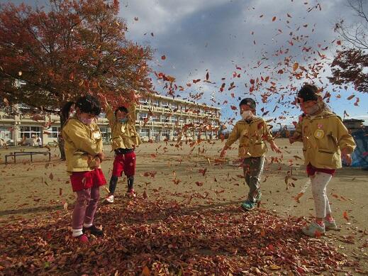 オレンジ、赤、黄色「きれいだね」「集めよう」とみんなで