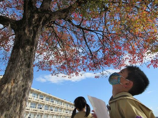 葉の色の違いや枝の分かれ方、木の幹の質感にも注目して描いていました。
