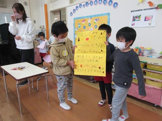 11月10日(水)今日は、みんなで書いた招待状を渡しに行きました。