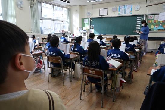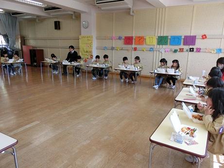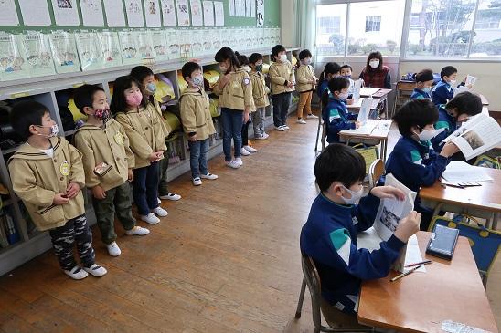 1月28日(木)年長たけのこ組さんは、小学校入学を前に、笹谷小学校の1年生の授業や給食の様子を見学しました。