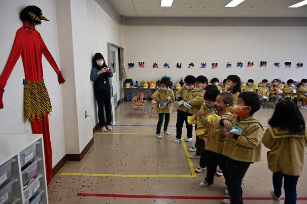 豆まきは、新型コロナウイルス感染症拡大防止のため、本物の鬼さんも自粛中です。
