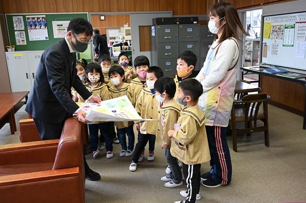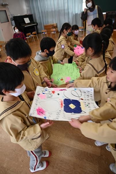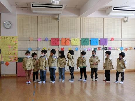 最後に、年少つくし組から年長たけのこ組へ、お別れ会の案内状が渡されました。