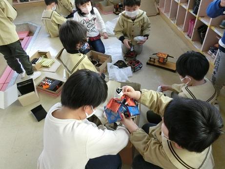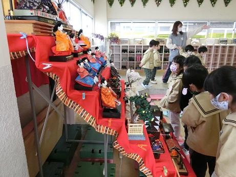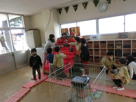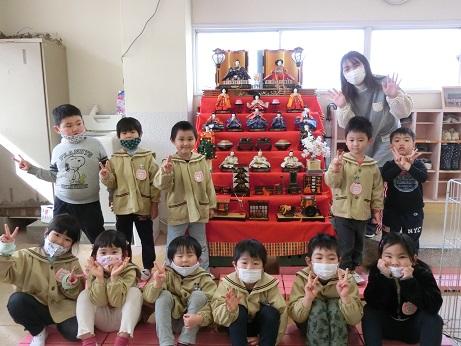 たけのこ組がひな人形を飾り付けました。