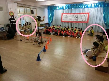笹谷保育所のぞう組は、男女に分かれてのダンスと、合奏の発表です。
