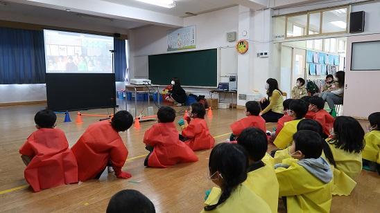 つくし組も興味津々で、リモート交流を見ていました。