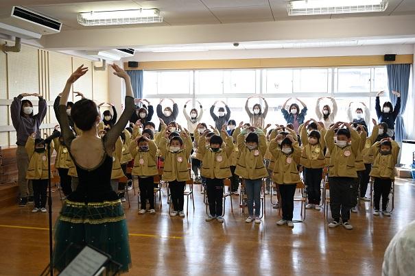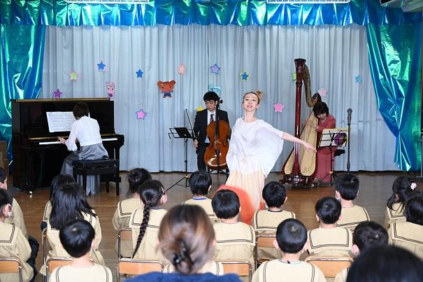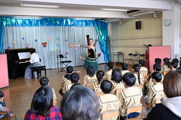 最後に、鬼滅の刃の主題歌「紅蓮華」の演奏に合わせたバレエは見事で、園児も保護者も真剣に鑑賞に浸っていました。