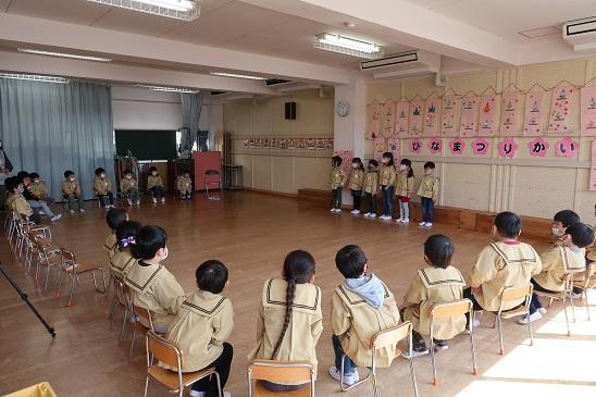 3月3日(水)ひな祭り会を行いました。年長さんが進行する最後の園行事です。