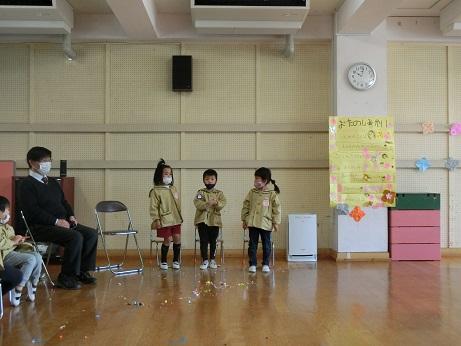 今日は、節分の豆まき、給食試食、そしてお世話になった校長先生へみんなで御礼をしました。