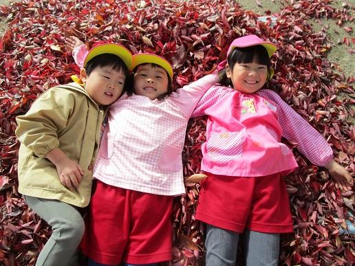こんな暖かい日は、落ち葉のお布団の上でお昼寝。きもちいい!