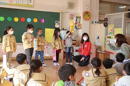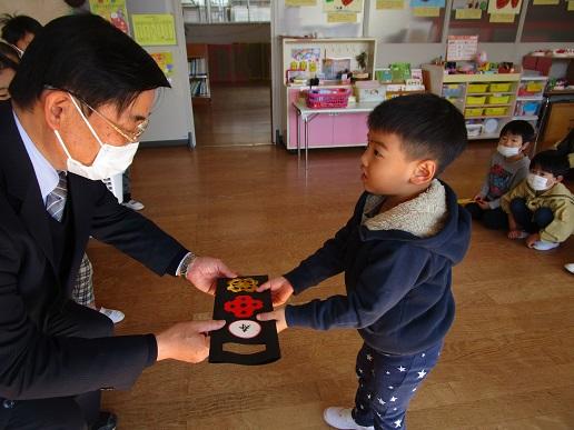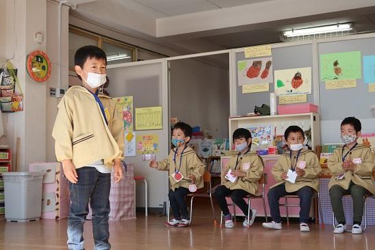 その後、代表園児が、手作りした千歳飴袋づくりで工夫したことなどを発表しました。