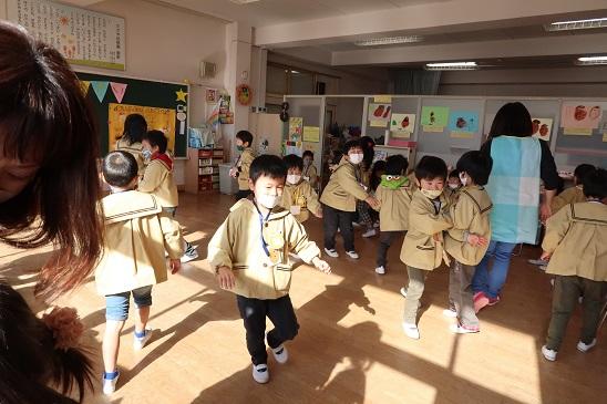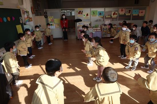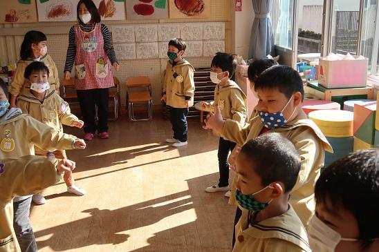 今回のお楽しみはフルーツバスケットです。当番のお友達がフルーツのカードを配ります。