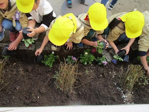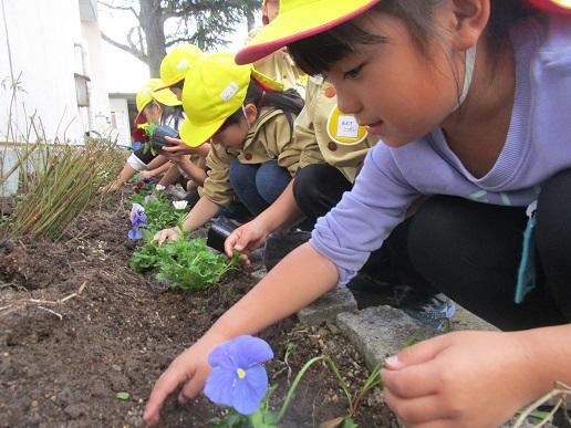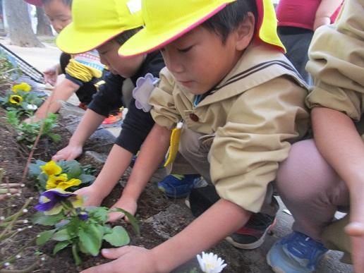 11月26日(木)に、年長さんは、寂しかった花壇を花で飾りました。