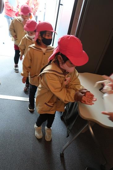 プラネタリウム前で担当の先生に鑑賞の約束を聴いて、一人一人手を消毒して入りました。
