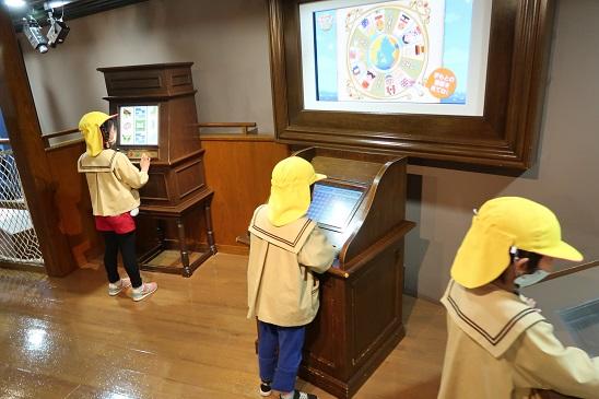 次は、「ドリームシップ号」を模した巨大迷路や体験型のたくさん展示がある常設展示室での体験学習です。