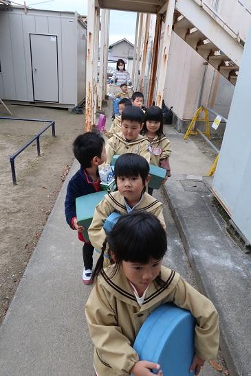 今日と明日で自分たちで運べるものは運ぶことにしました。小学校への31人のお引っ越しです。