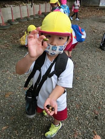 途中で塩釜神社の駐車場でドングリ拾いをしました。