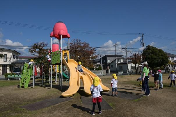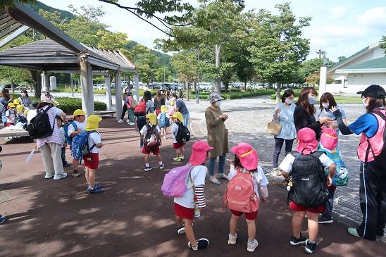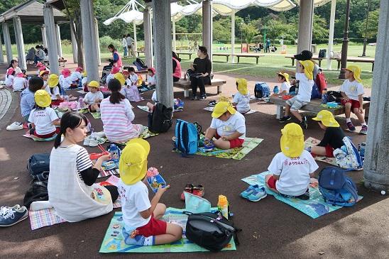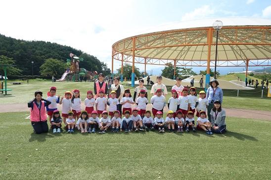 例年は、互いに園を訪問しての交流会でしたが、今年はコロナの影響もあり、中間にある笹谷公園で、感染予防対策をとっての実施としました。