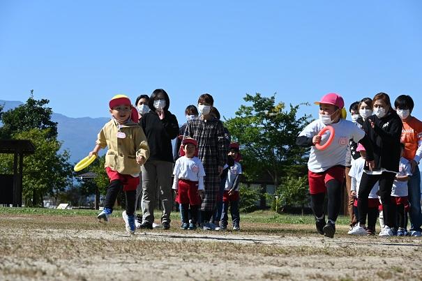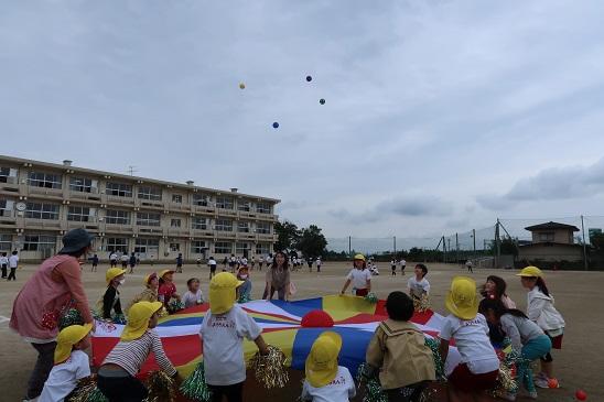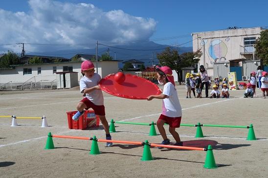 園児のリレーや保護者の50メートル走、バルーンなど親子で大いに楽しみました。