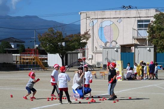 <年少-ダンシング玉入れ。玉入れの前後のダンスがかわいいよ。>