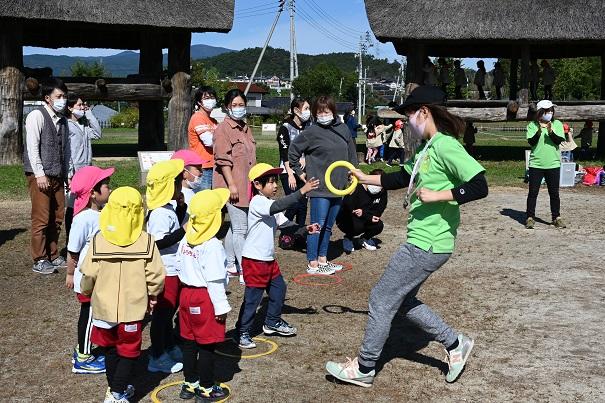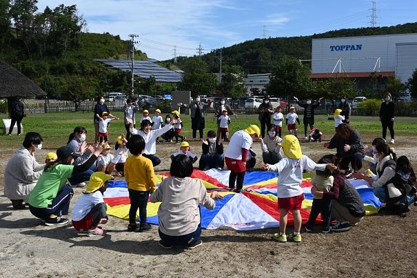 年長・年少に分かれ、親子ミニ運動会と遊具遊びをして楽しみました。